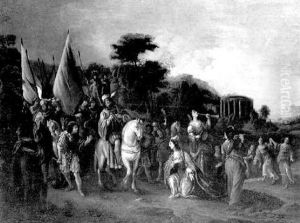 A Hunting Scene With Ruins Beyond (+ Travellers In A Landscape With A Town Beyond, Smllr; Set Of 2)