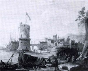 An Italianate Harbour With Fisherfolk On The Shore, A Tower And A Town Beyond