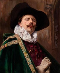 Portrait Of A Cavalier Holding A Gun In A Doorway