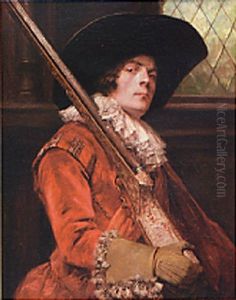 Portrait Of A Dashing Cavalier Holding A Musket