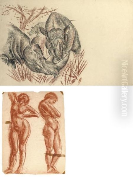 Rhinos (illustrated); Study Of A Male Nude; Study Of A Female Nude; And Two Studies Of A Standing Female Nude (illustrated)
