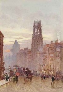 The Rush Hour by the Royal Exchange from Queen Victoria Street, 1904