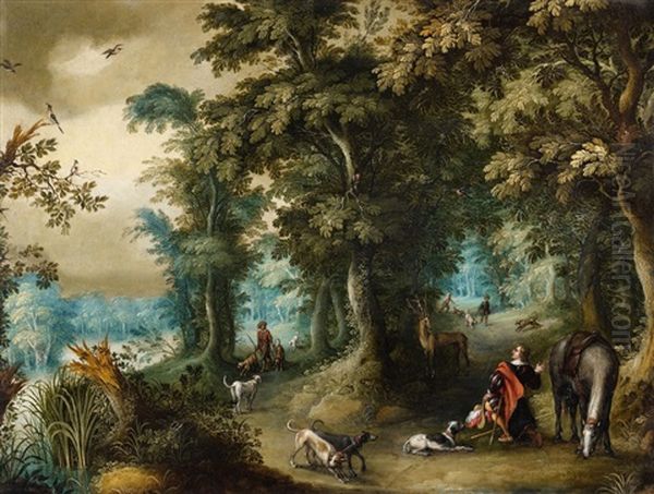 A Forest Landscape With Saint Hubert