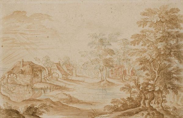 Paysage Fluvial Avec Un Moulin