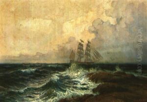 Groses Seestuck Mit Dreimaster Im Abendlicht
