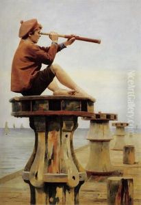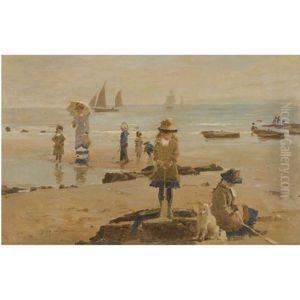 The Wind In Their Sails, Children Playing Withtoy Boats By The Waters Edge