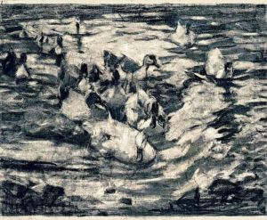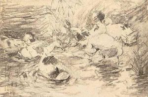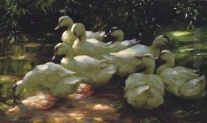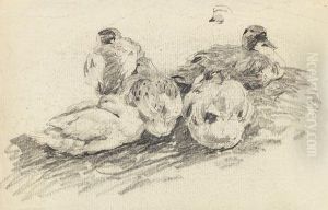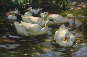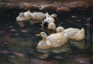 Zehn Enten Bei Sonnenuntergang Im Weiher