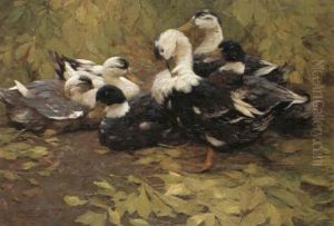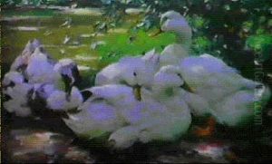 A Group Of Ducks Resting By Trees