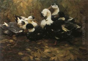 Sechs Enten Im Herbstlaub