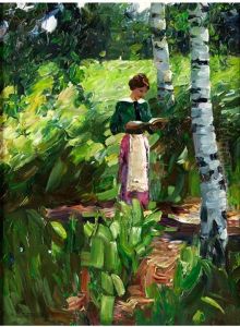 Lesendes Madchen Unter Birken An Einem Hang