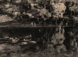 A Group Of Ducks Resting By Trees