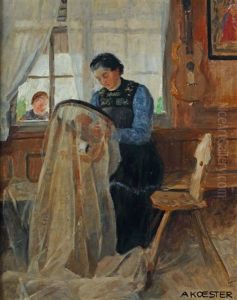 Bring the timeless beauty of Alexander Max Koester's Am Stickrahmen into your home with a handmade oil painting reproduction. Carefully recreated on canvas by skilled artists using traditional techniques, this piece captures the delicate brushwork, subtle light, and vibrant color of the original masterpiece. With museum-level quality and rich texture, it brings elegance and artistic depth to any space. Enjoy free shipping and make this masterpiece a part of your personal collection.