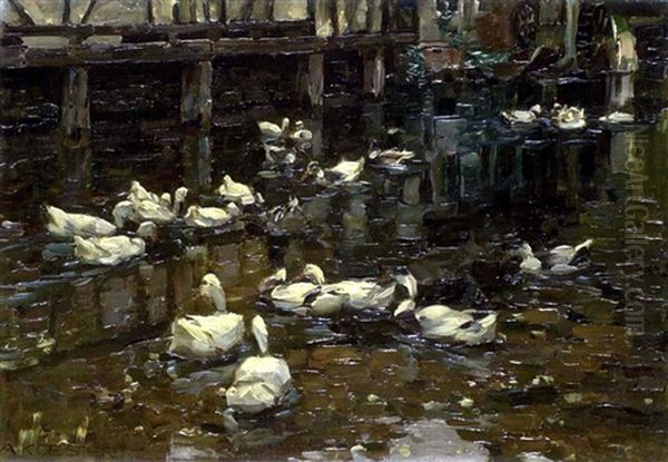 Enten Am Wehr Oil Painting by Alexander Max Koester