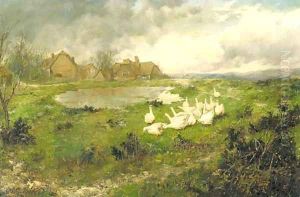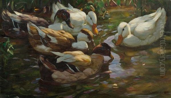 Funf Enten Im Teich Oil Painting by Alexander Max Koester