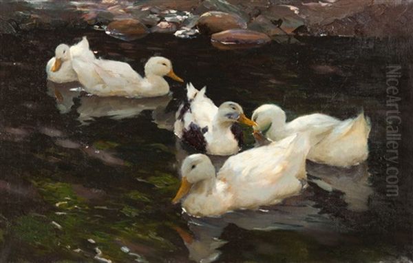 Bring the timeless beauty of Alexander Max Koester's Funf Enten Im Teich into your home with a handmade oil painting reproduction. Carefully recreated on canvas by skilled artists using traditional techniques, this piece captures the delicate brushwork, subtle light, and vibrant color of the original masterpiece. With museum-level quality and rich texture, it brings elegance and artistic depth to any space. Enjoy free shipping and make this masterpiece a part of your personal collection.