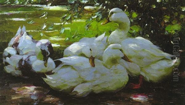 Bring the timeless beauty of Alexander Max Koester's Im Schatten. Vier Weisse Enten Unter Weidenbaumen Am Wasser into your home with a handmade oil painting reproduction. Carefully recreated on canvas by skilled artists using traditional techniques, this piece captures the delicate brushwork, subtle light, and vibrant color of the original masterpiece. With museum-level quality and rich texture, it brings elegance and artistic depth to any space. Enjoy free shipping and make this masterpiece a part of your personal collection.
