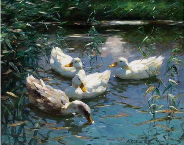 Bring the timeless beauty of Alexander Max Koester's Vier Enten Im Teich into your home with a handmade oil painting reproduction. Carefully recreated on canvas by skilled artists using traditional techniques, this piece captures the delicate brushwork, subtle light, and vibrant color of the original masterpiece. With museum-level quality and rich texture, it brings elegance and artistic depth to any space. Enjoy free shipping and make this masterpiece a part of your personal collection.