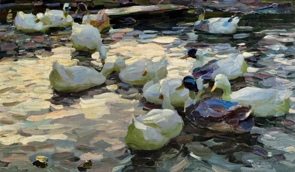 Bring the timeless beauty of Alexander Max Koester's Zwolf Enten into your home with a handmade oil painting reproduction. Carefully recreated on canvas by skilled artists using traditional techniques, this piece captures the delicate brushwork, subtle light, and vibrant color of the original masterpiece. With museum-level quality and rich texture, it brings elegance and artistic depth to any space. Enjoy free shipping and make this masterpiece a part of your personal collection.