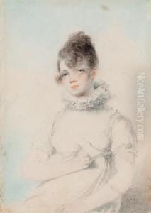 Bildnis Einer Dame In Weisem Kleid Und Gelber Stola Als Halbfigur Vor Landschaftshintergrund
