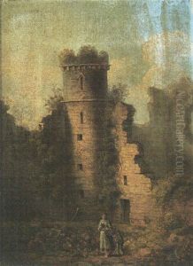 Classical Figures In An Extensive Landscape With Castle Beyond