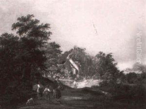 Landscape With Figures Near A Thatched Cottage