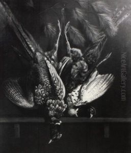 Trompe L'oeil Still Life With Game Bird On Plank Wall