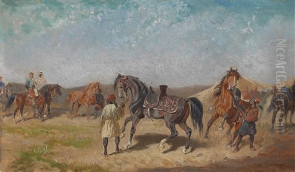 Bring the timeless beauty of Alexander Ritter Von Bensa's Nordafrikanisches Reiterlager into your home with a handmade oil painting reproduction. Carefully recreated on canvas by skilled artists using traditional techniques, this piece captures the delicate brushwork, subtle light, and vibrant color of the original masterpiece. With museum-level quality and rich texture, it brings elegance and artistic depth to any space. Enjoy free shipping and make this masterpiece a part of your personal collection.