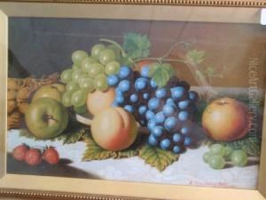A Still Life Of Fruit And Beer Stein On A Table Top