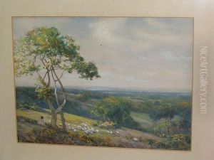 A shepherd with his flock at Shere, near Dorking