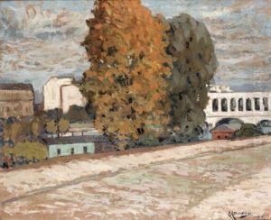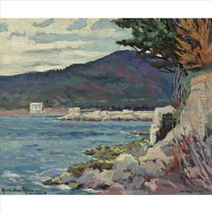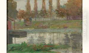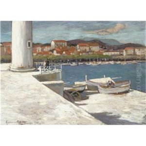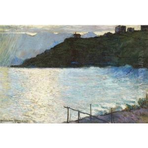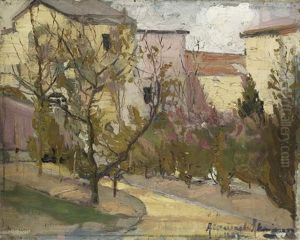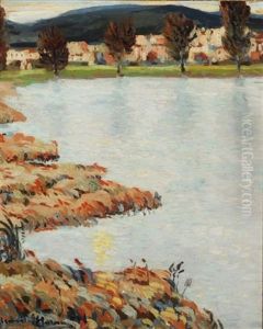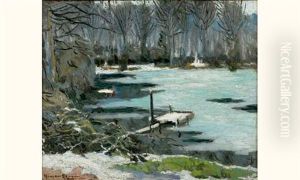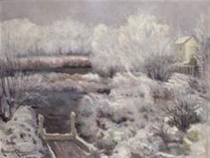 Winter Landscape With Houses And A Small Church Sheltered By Mountains