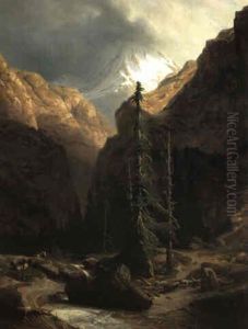Ein Paar Gebirgslandschaften A) Hirte An Einem Alpsee, Im Hintergrund Die Jungfrau B) Rastender Wanderer (pendants)