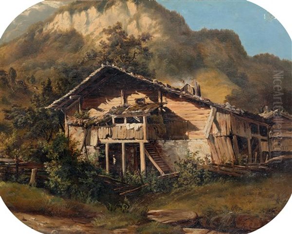 Fermette De Montagne Oil Painting by Alexandre Calame