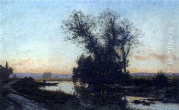 Bord De Riviere Au Coucher De Soleil