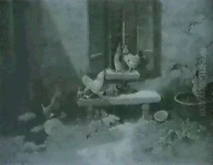 Printemps, Poules, Coqs Et Canards Sous Le Pommier En Fleurs