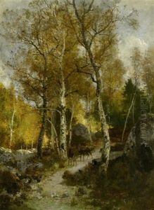 Madchen Mit Schafen Im Wald Von Fontainebleau