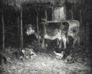 Huhner In Der Scheune Oil Painting by Alexandre Defaux