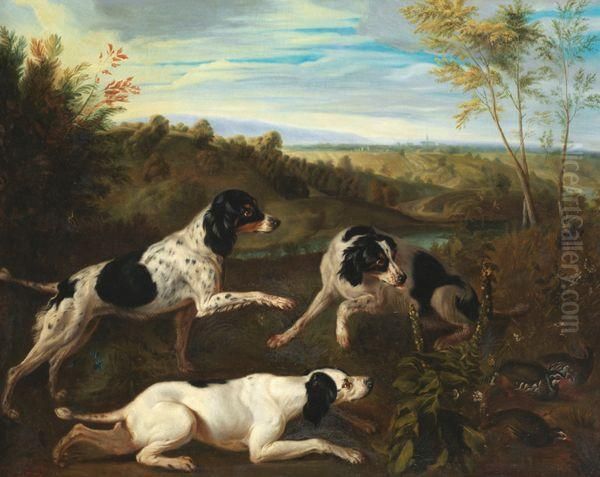 Chiens Debusquant Dans La Campagne Des Perdrix