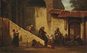Moine Aupres De Mendiants Dans Une Cour