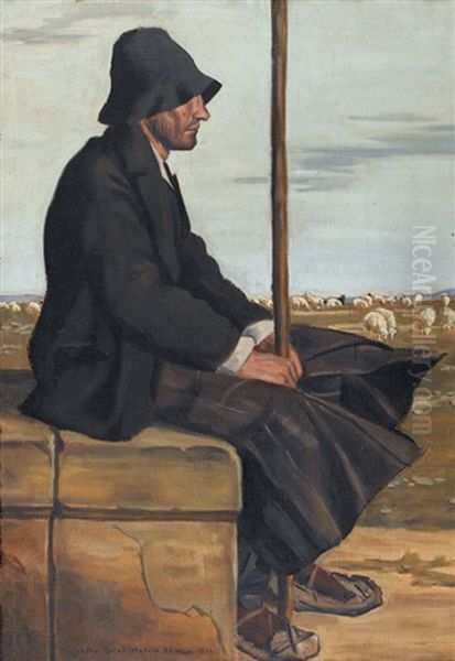 Ruhender Hirte Mit Seiner Schafherde