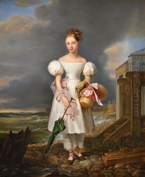 Portrait of the Young Princess Louise d'Artois, Daughter of the Duchess of Berry, future Duchess of Parma (1819-1864) on the Beach at Dieppe