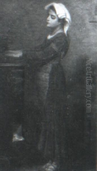 Warming Her Hands Oil Painting by Alexandre Marie Guillemin