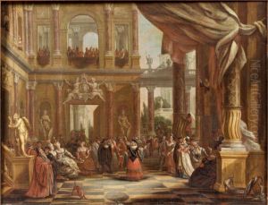 Scene De Bal Sous Les Arcades D'un Palais