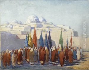 Rue Animee A Istanbul Lively Street At Istanbul Huile Sur Toile Marouflee Sur Carton