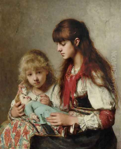 Sisters Oil Painting by Alexei Alexeivich Harlamoff
