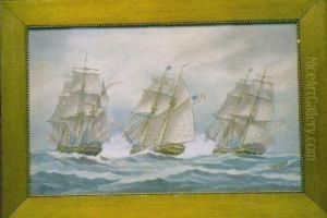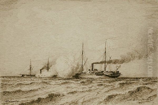 A Sea Battle Oil Painting by Alexey Bogolyubov