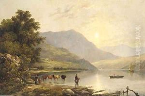 Glowing Sunset With Woman And Cattle