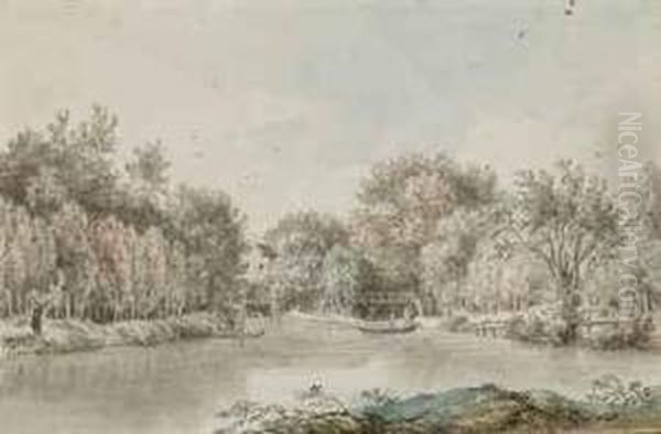 Paysage Fluvial, Des Barques A L'arriere-plan