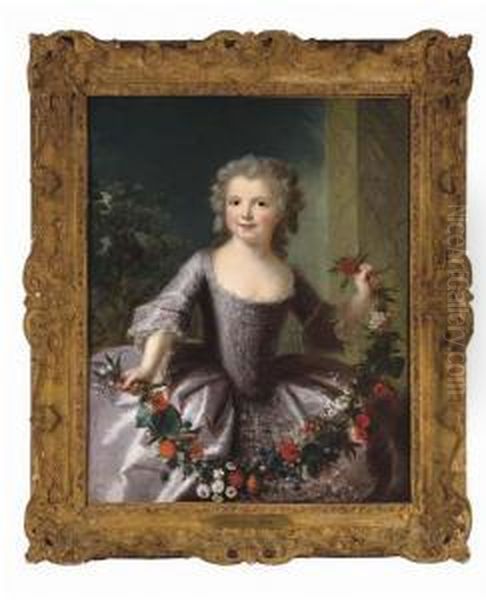 Portrait Of A Young Girl, Three-quarter-length, In A Lilac Dress With A Swag Of Flowers