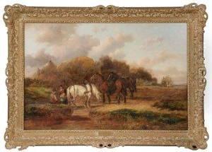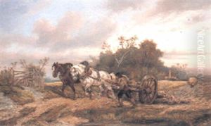 Hay For The Troops (landscape With Oxen, Wagon And Figures)