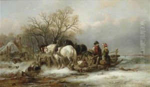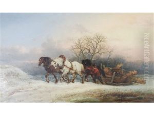 A Winter Landscape With A Horse Drawn Timber Sledge